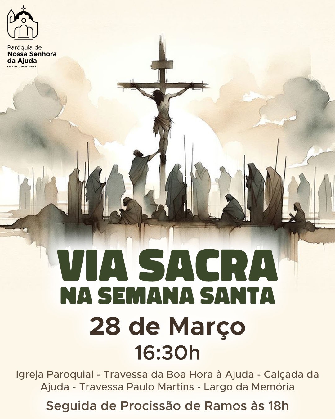 • 16h30 – Início da Via Sacra, com percurso até à Igreja da Memória (cerca de 800m)