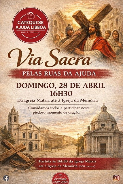 No próximo sábado, dia 28, às 16h30, realizar-se-á a Via Sacra de rua, organizada pela Catequese. Este momento é aberto a toda a comunidade, pelo que convidamos todos a participar e a trazer também familiares e amigos.