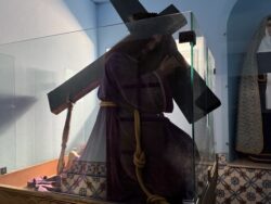 Maria sustenta o corpo de Cristo após a crucifixão, numa cena de luto silencioso, marcada por dor, compaixão e esperança redentora.