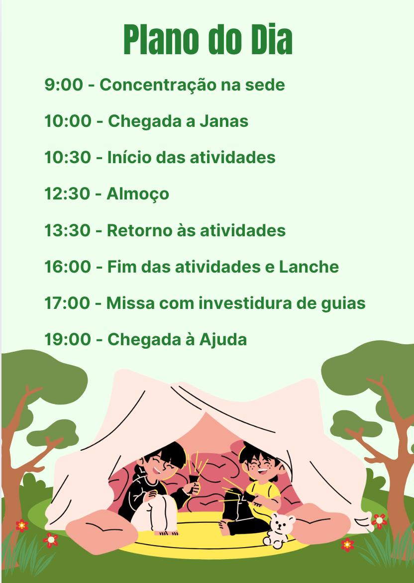 Será um dia cheio de atividades, jogos, convívio e descoberta, onde crianças e jovens (dos 5/6 anos até aos 20 anos) podem experimentar de perto o que é ser escuteiro. Mesmo que não consigam estar presentes o tempo todo, venham pelo tempo que puderem – cada momento vai valer a pena!