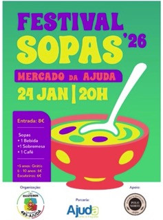 Já estamos com água na boca para mais uma edição do Festival de Sopas, que promete aquecer o inverno com sabores, convívio e espírito comunitário. A edição Festival de Sopas ’26 realiza-se no próximo dia 24 de janeiro, a partir das 20h, no Mercado da Ajuda.